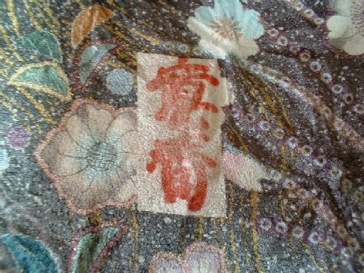お仕立ての際、落款部分を見落としてしまった為、着物には落款が入っていません。お詫びにと袱紗を作ってくださいました。