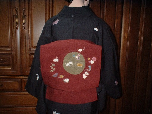 帯:赤城紬九寸名古屋帯「十二支柄」