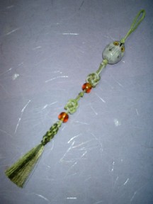 飾りのビーズをつけて出来上がりです。(チェコビーズ・勾玉ビーズ各2個)